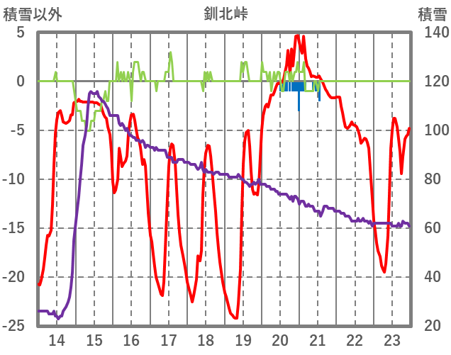 | 日 | 時 | 気温 | 降水 | 風向/風速 | 日照 | 積雪 | 降雪 |
