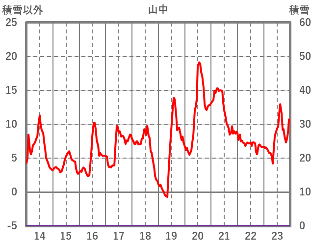 | 日 | 時 | 気温 | 降水 | 風向/風速 | 日照 | 積雪 | 降雪 |