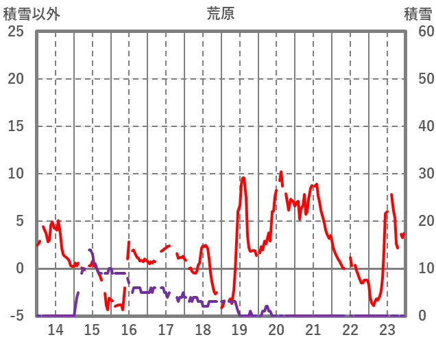 | 日 | 時 | 気温 | 降水 | 風向/風速 | 日照 | 積雪 | 降雪 |