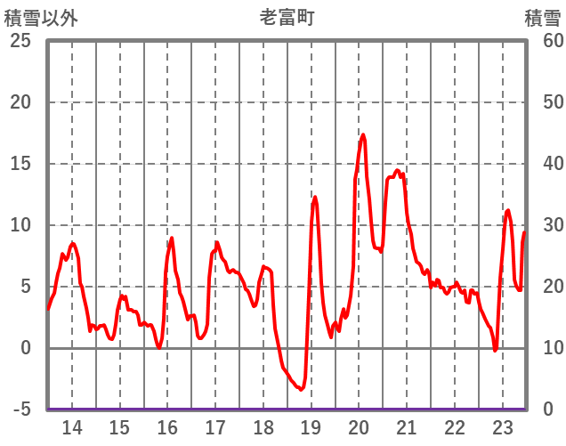 | 日 | 時 | 気温 | 降水 | 風向/風速 | 日照 | 積雪 | 降雪 |