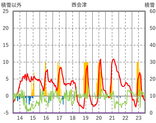| 日 | 時 | 気温 | 降水 | 風向/風速 | 日照 | 積雪 | 降雪 |