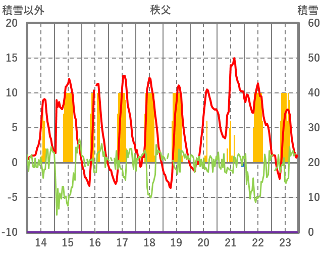 | 日 | 時 | 気温 | 降水 | 風向/風速 | 日照 | 積雪 | 降雪 |