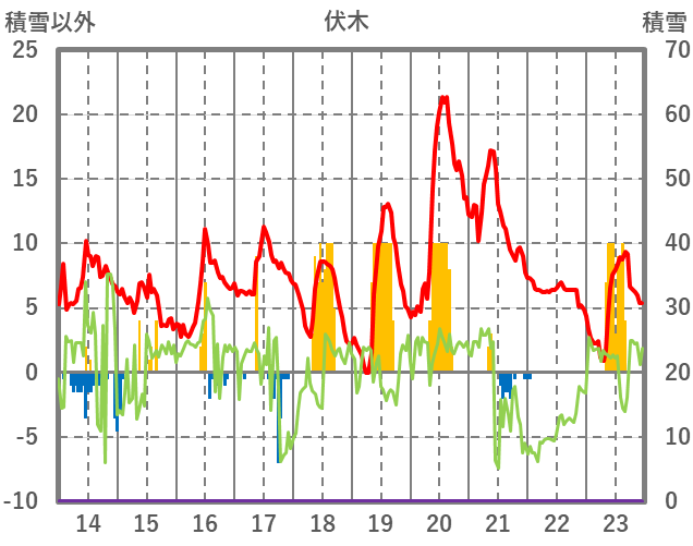 | 日 | 時 | 気温 | 降水 | 風向/風速 | 日照 | 積雪 | 降雪 |