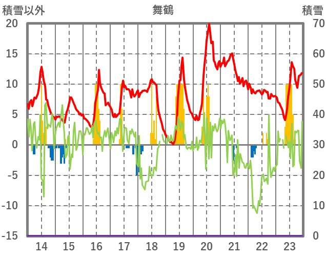 | 日 | 時 | 気温 | 降水 | 風向/風速 | 日照 | 積雪 | 降雪 |
