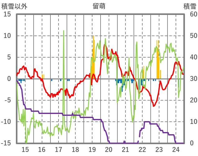 | 日 | 時 | 気温 | 降水 | 風向/風速 | 日照 | 積雪 | 降雪 |