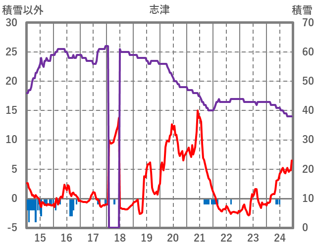 | 日 | 時 | 気温 | 降水 | 風向/風速 | 日照 | 積雪 | 降雪 |