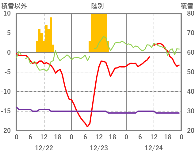 | 日 | 時 | 気温 | 降水 | 風向/風速 | 日照 | 積雪 | 降雪 |