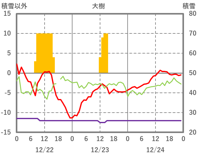 | 日 | 時 | 気温 | 降水 | 風向/風速 | 日照 | 積雪 | 降雪 |