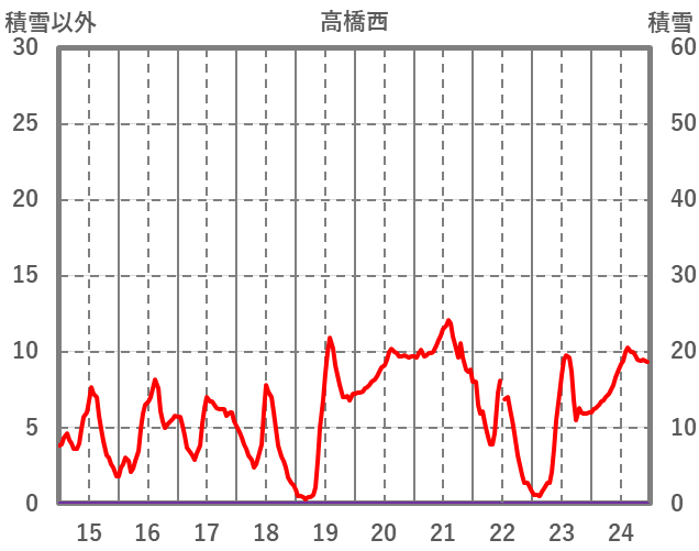| 日 | 時 | 気温 | 降水 | 風向/風速 | 日照 | 積雪 | 降雪 |