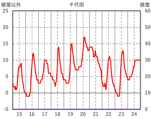 | 日 | 時 | 気温 | 降水 | 風向/風速 | 日照 | 積雪 | 降雪 |
