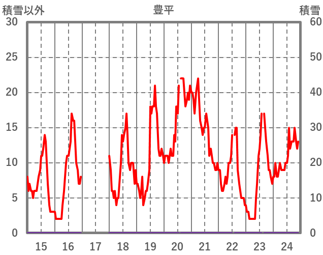 | 日 | 時 | 気温 | 降水 | 風向/風速 | 日照 | 積雪 | 降雪 |