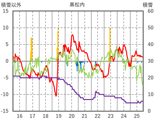 | 日 | 時 | 気温 | 降水 | 風向/風速 | 日照 | 積雪 | 降雪 |