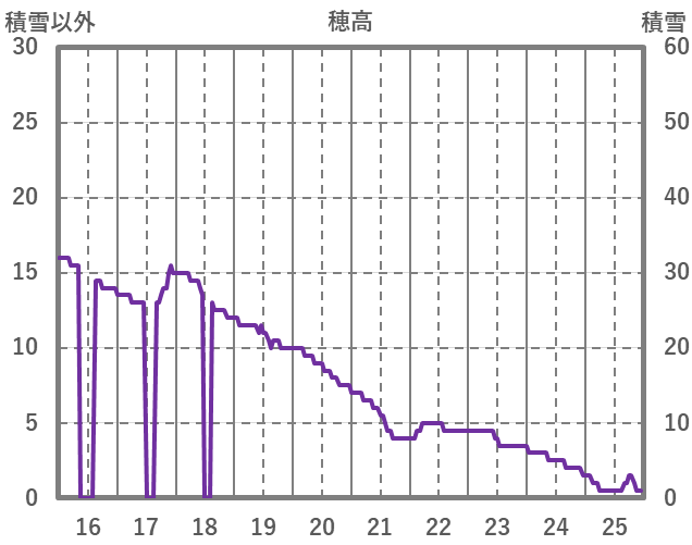 | 日 | 時 | 気温 | 降水 | 風向/風速 | 日照 | 積雪 | 降雪 |