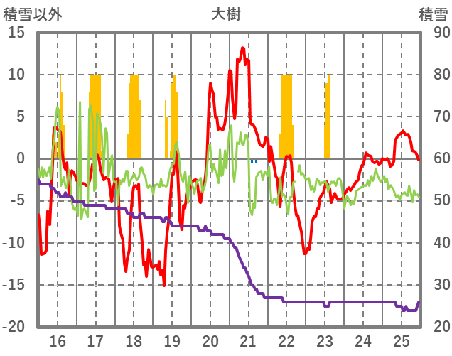 | 日 | 時 | 気温 | 降水 | 風向/風速 | 日照 | 積雪 | 降雪 |