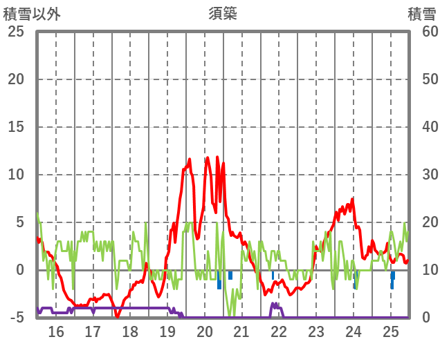| 日 | 時 | 気温 | 降水 | 風向/風速 | 日照 | 積雪 | 降雪 |
