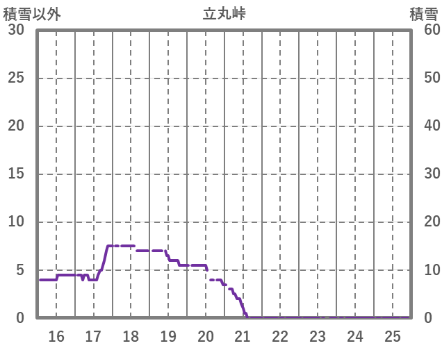 | 日 | 時 | 気温 | 降水 | 風向/風速 | 日照 | 積雪 | 降雪 |