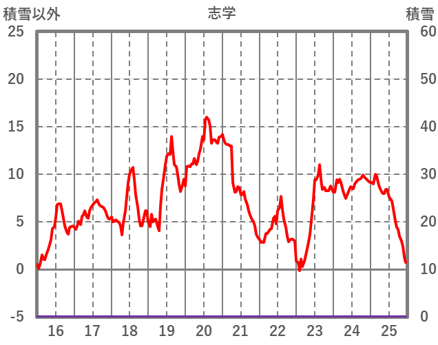 | 日 | 時 | 気温 | 降水 | 風向/風速 | 日照 | 積雪 | 降雪 |