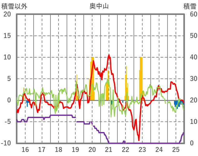 | 日 | 時 | 気温 | 降水 | 風向/風速 | 日照 | 積雪 | 降雪 |