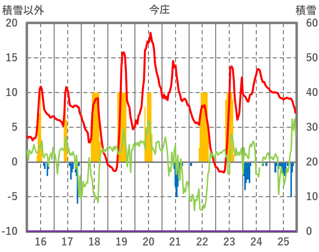 | 日 | 時 | 気温 | 降水 | 風向/風速 | 日照 | 積雪 | 降雪 |