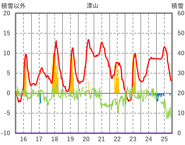 | 日 | 時 | 気温 | 降水 | 風向/風速 | 日照 | 積雪 | 降雪 |