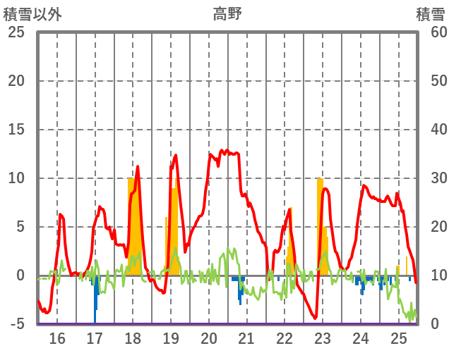 | 日 | 時 | 気温 | 降水 | 風向/風速 | 日照 | 積雪 | 降雪 |