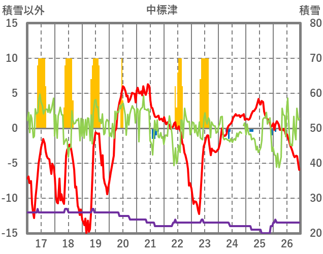 | 日 | 時 | 気温 | 降水 | 風向/風速 | 日照 | 積雪 | 降雪 |