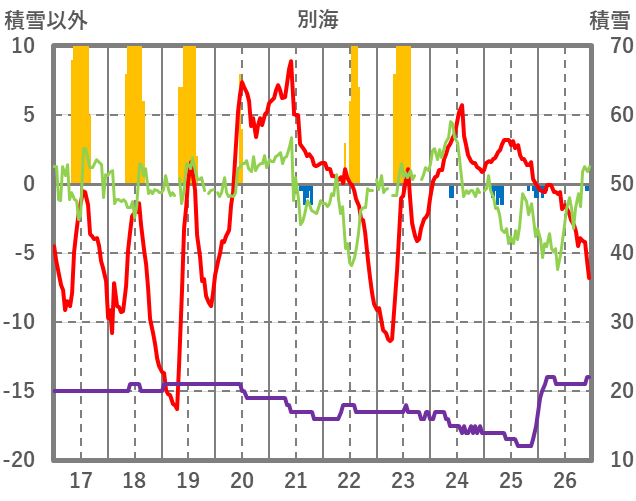 | 日 | 時 | 気温 | 降水 | 風向/風速 | 日照 | 積雪 | 降雪 |