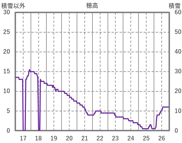 | 日 | 時 | 気温 | 降水 | 風向/風速 | 日照 | 積雪 | 降雪 |