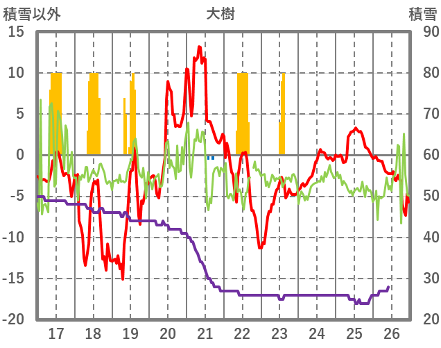 | 日 | 時 | 気温 | 降水 | 風向/風速 | 日照 | 積雪 | 降雪 |