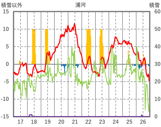 | 日 | 時 | 気温 | 降水 | 風向/風速 | 日照 | 積雪 | 降雪 |