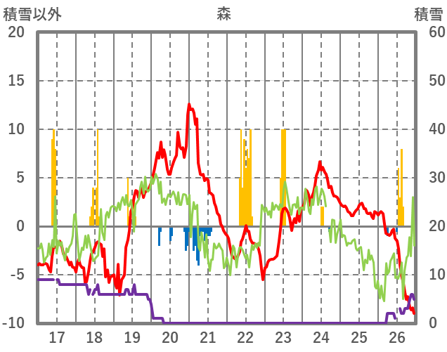 | 日 | 時 | 気温 | 降水 | 風向/風速 | 日照 | 積雪 | 降雪 |