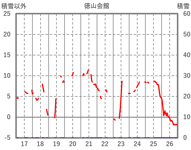 | 日 | 時 | 気温 | 降水 | 風向/風速 | 日照 | 積雪 | 降雪 |
