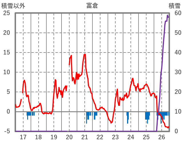 | 日 | 時 | 気温 | 降水 | 風向/風速 | 日照 | 積雪 | 降雪 |
