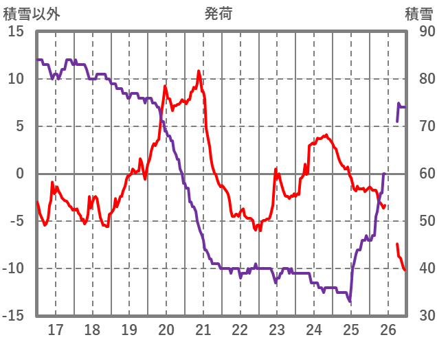 | 日 | 時 | 気温 | 降水 | 風向/風速 | 日照 | 積雪 | 降雪 |