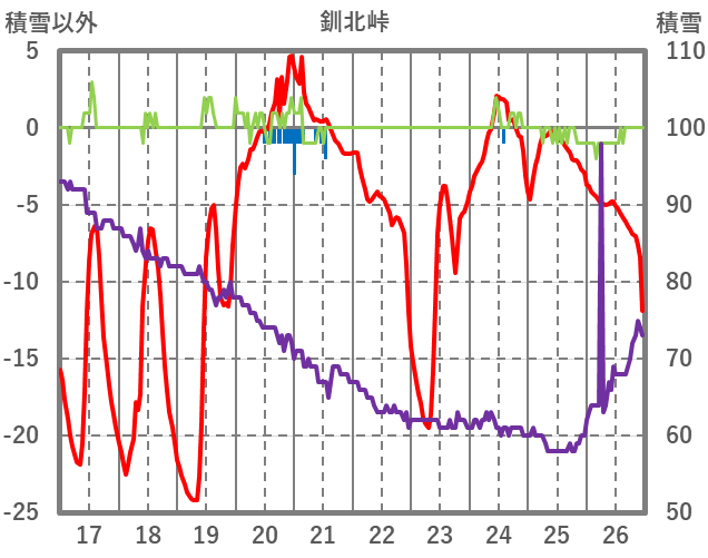 | 日 | 時 | 気温 | 降水 | 風向/風速 | 日照 | 積雪 | 降雪 |
