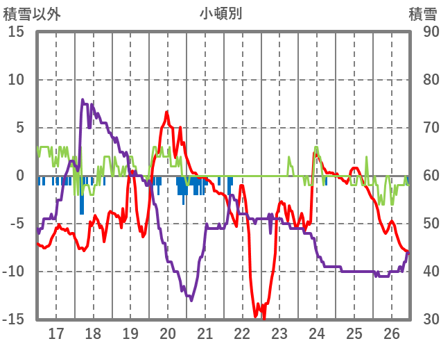 | 日 | 時 | 気温 | 降水 | 風向/風速 | 日照 | 積雪 | 降雪 |