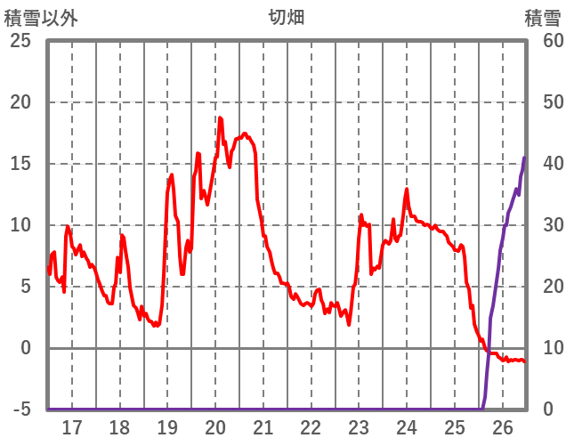 | 日 | 時 | 気温 | 降水 | 風向/風速 | 日照 | 積雪 | 降雪 |