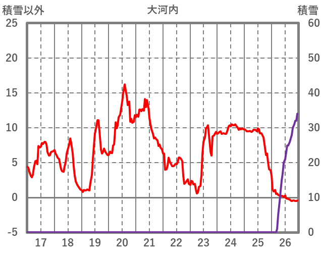 | 日 | 時 | 気温 | 降水 | 風向/風速 | 日照 | 積雪 | 降雪 |
