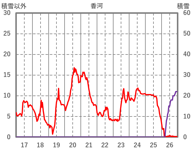 | 日 | 時 | 気温 | 降水 | 風向/風速 | 日照 | 積雪 | 降雪 |