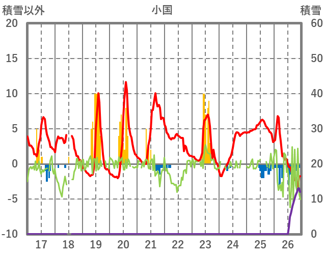 | 日 | 時 | 気温 | 降水 | 風向/風速 | 日照 | 積雪 | 降雪 |