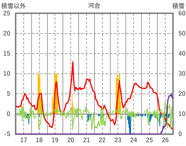 | 日 | 時 | 気温 | 降水 | 風向/風速 | 日照 | 積雪 | 降雪 |