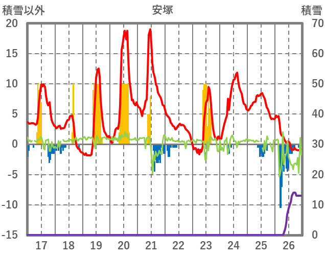 | 日 | 時 | 気温 | 降水 | 風向/風速 | 日照 | 積雪 | 降雪 |