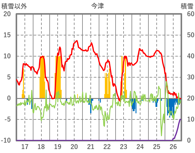 | 日 | 時 | 気温 | 降水 | 風向/風速 | 日照 | 積雪 | 降雪 |