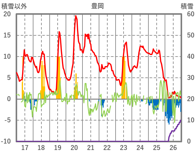 | 日 | 時 | 気温 | 降水 | 風向/風速 | 日照 | 積雪 | 降雪 |