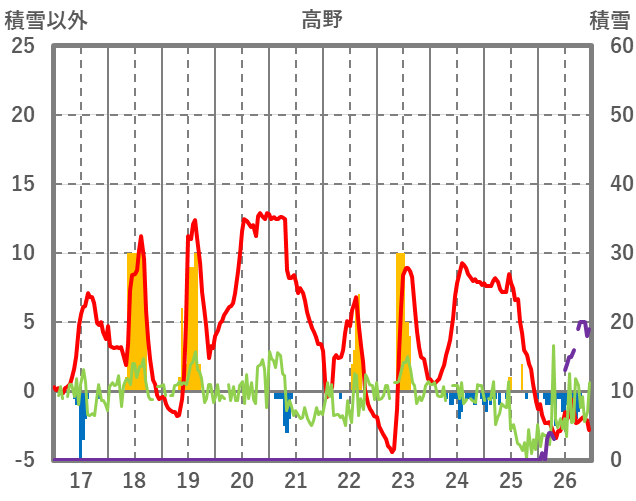 | 日 | 時 | 気温 | 降水 | 風向/風速 | 日照 | 積雪 | 降雪 |