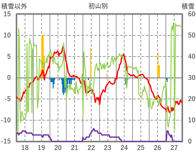 | 日 | 時 | 気温 | 降水 | 風向/風速 | 日照 | 積雪 | 降雪 |