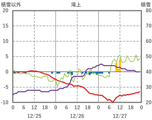 | 日 | 時 | 気温 | 降水 | 風向/風速 | 日照 | 積雪 | 降雪 |