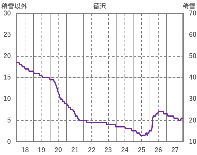 | 日 | 時 | 気温 | 降水 | 風向/風速 | 日照 | 積雪 | 降雪 |