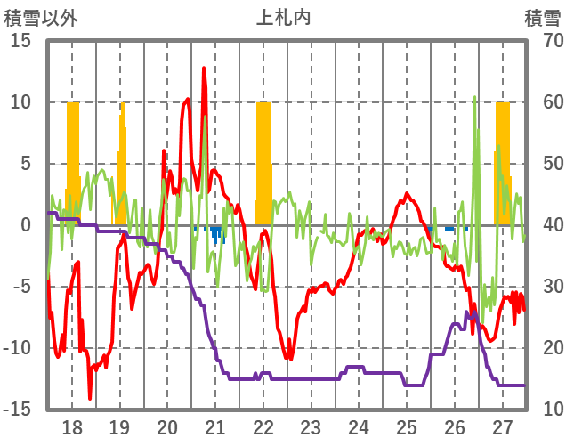 | 日 | 時 | 気温 | 降水 | 風向/風速 | 日照 | 積雪 | 降雪 |