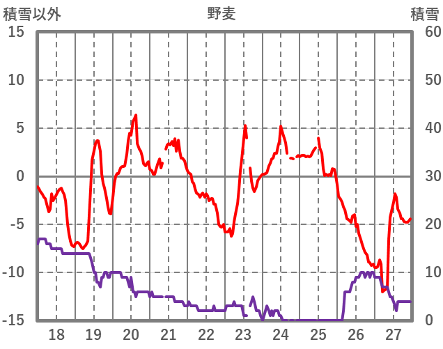 | 日 | 時 | 気温 | 降水 | 風向/風速 | 日照 | 積雪 | 降雪 |